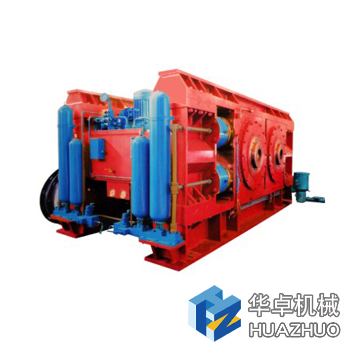 輥壓機(jī)是根據(jù)料床粉碎的原理設(shè)計(jì)的,兩個輥?zhàn)幼髀俚南鄬\(yùn)動,其中一個輥固定,另一個輥可以沿水平方向滑動。物料由輥壓機(jī)上部連續(xù)地喂入并通過雙輥間的間隙,給活動輥以一定的作用力,物料受壓而粉碎。
