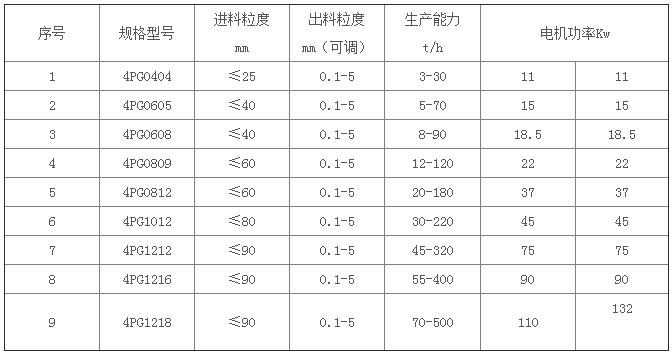 四輥破碎機(jī)配置四個(gè)碾輥,根據(jù)用戶需要的破碎粒度,分為二種機(jī)型: