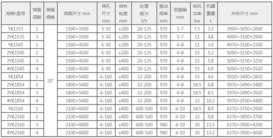 YK型圓振動(dòng)篩廣泛用于選礦、選煤、建材、建筑、電力等部門作物料干式分級用。圓振篩的振動(dòng)軌跡為圓,因而使篩面上的物料不斷地翻轉(zhuǎn)和松散,具有以下特點(diǎn):